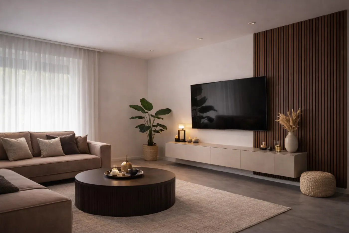 Textur, Licht und eine natürliche Basis machen den Raum sofort ruhiger.
